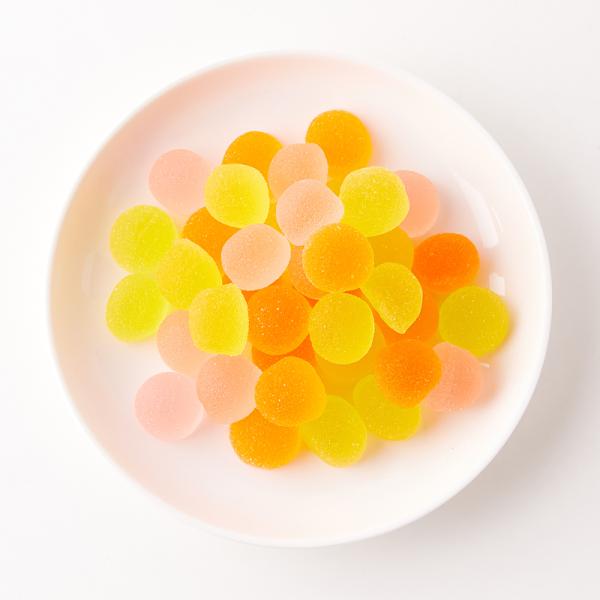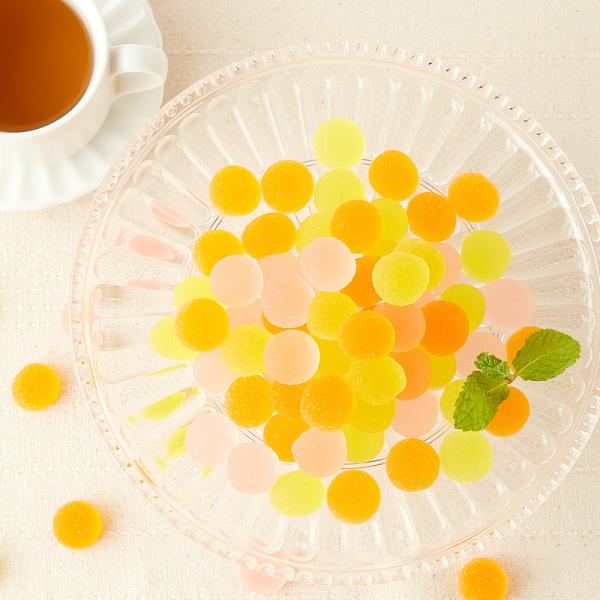 砂糖(国内製造)、水飴、ブドウ糖、パッション果汁、たんかん果汁、すもも果汁/糊料(ペクチン)、酸味料、香料、紅花色素、パプリカ色素、野菜色素