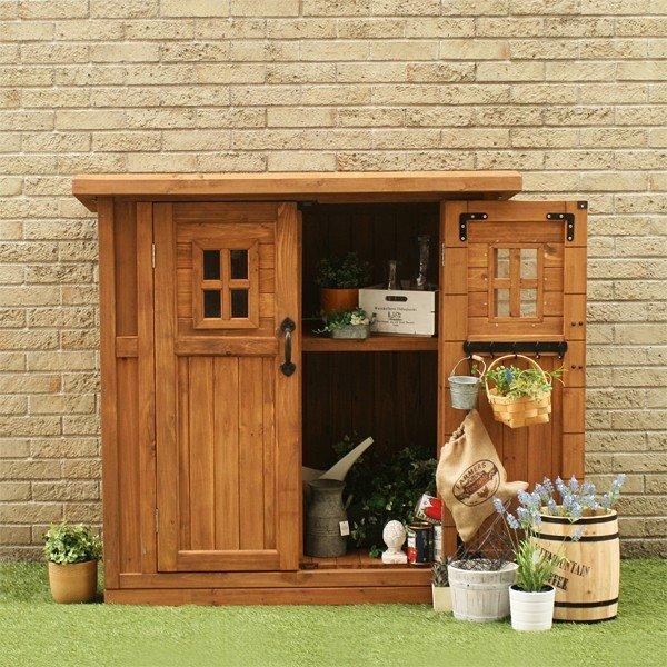 ホッとした気持ちになれる自然素材の収納庫は、スチール製より緑になじんでおしゃれ!置くだけで、まるで映画に出てくるような雰囲気のあるお庭に早変わり。