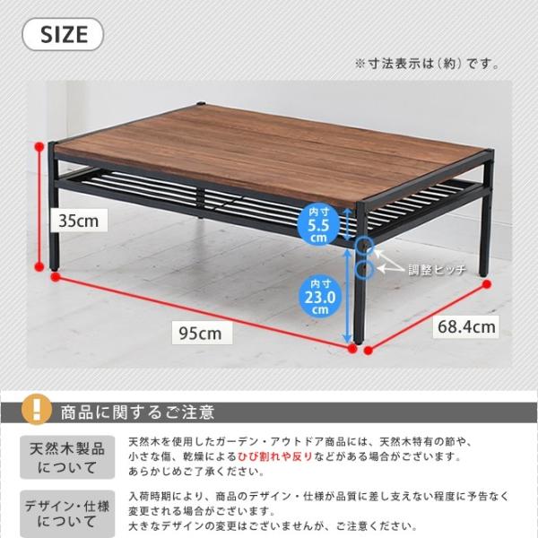 天板は四方をアイアンで縁取った、ミッドセンチュリー風のモダンなデザイン。食事や来客時などは、さっとリモコンや新聞、ティッシュ、ノートパソコンなどを下の棚に入れられて便利です。