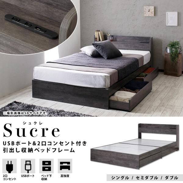 ・棚付きヘッドボードに2口コンセントとUSBポート付き