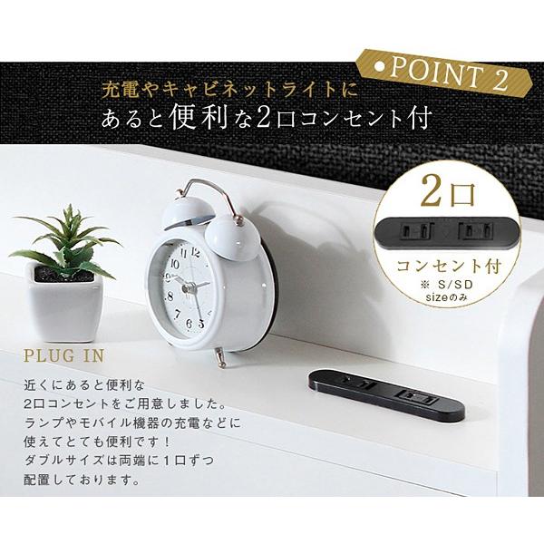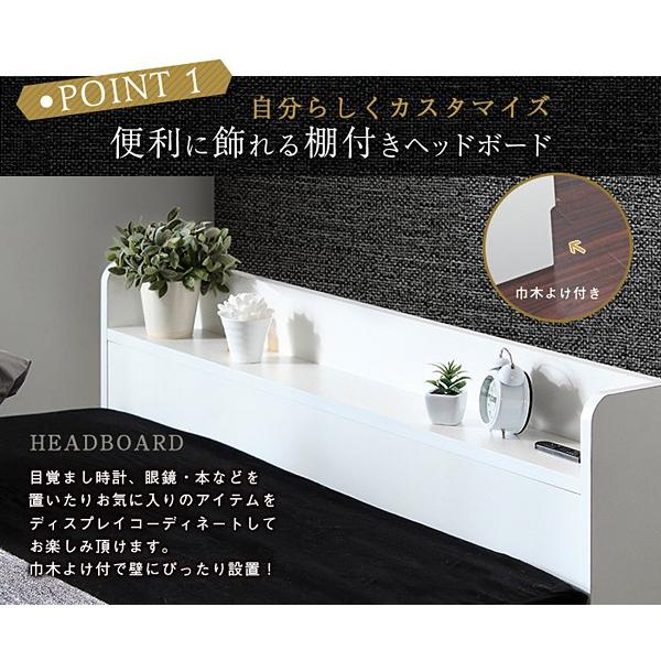便利に、おしゃれに、自分らしさをアピールできる棚付きヘッドボードは、目覚まし時計を置いたり、メガネ、携帯電話など小物置き場に最適です。