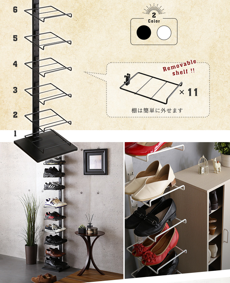 お気に入りの靴を飾るディスプレイラックとしても、靴を収納するためのシューズラックとしてもお使いいただけます。