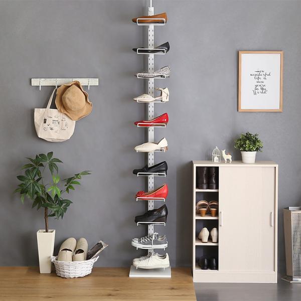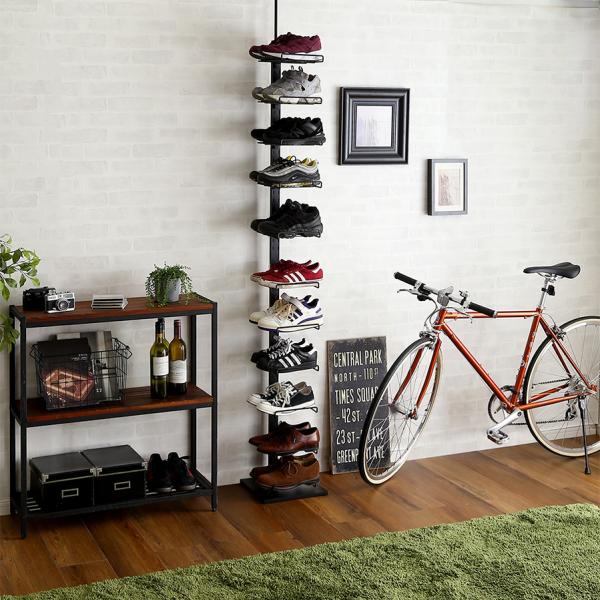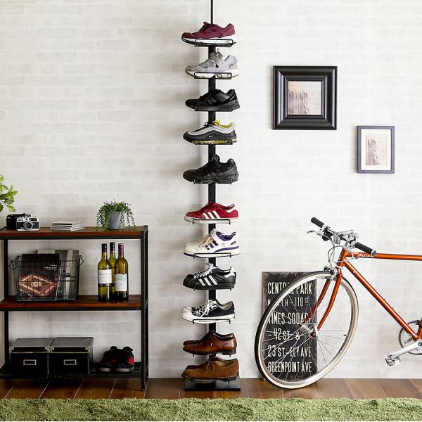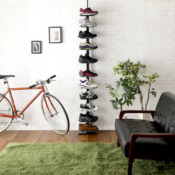 シューズラック 突っ張り つっぱり ディスプレイ 見せる 収納ラック 収納棚 天井 つっぱる 省スペース コンパクト コレクションラック スニーカー 革靴 30cm 【納期E】【szo-ppss】