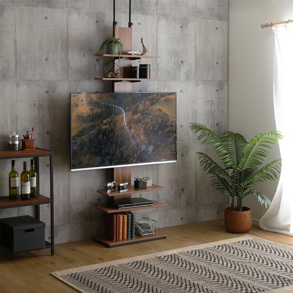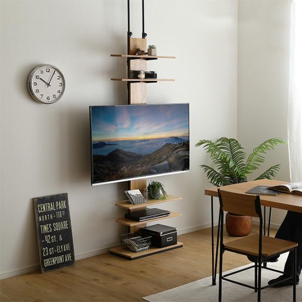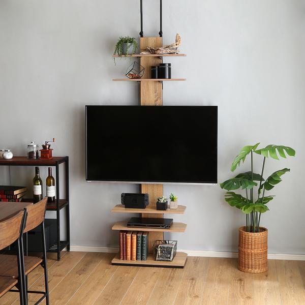 ディスプレイ収納が出来る突っ張りテレビスタンド。