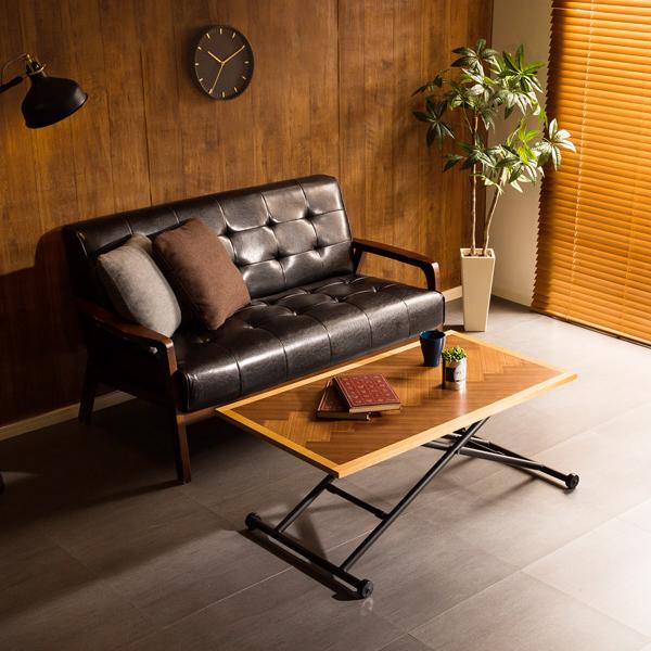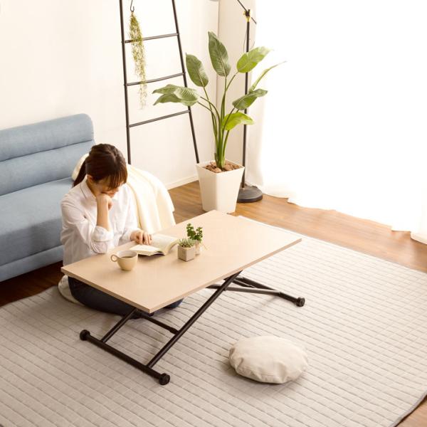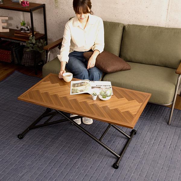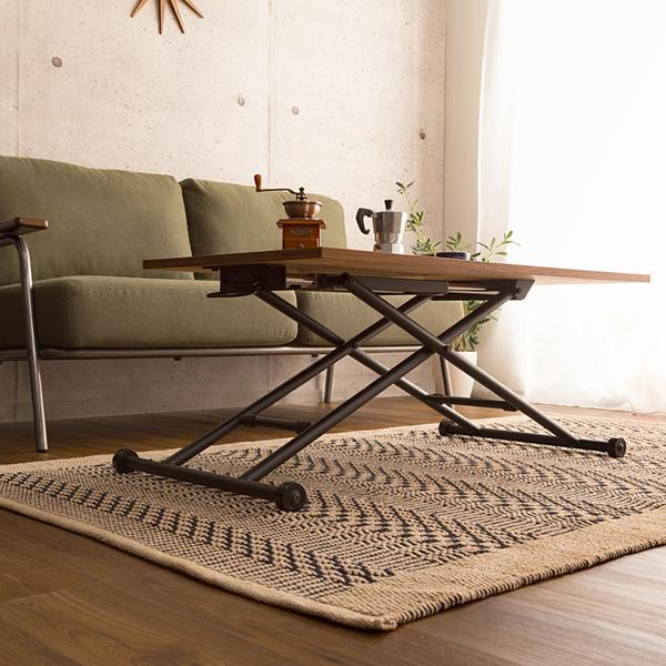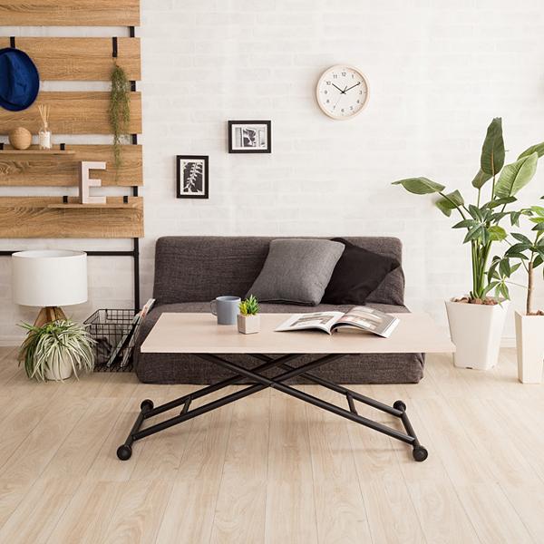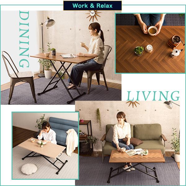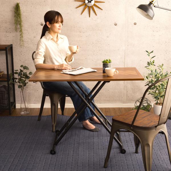 テーブル 昇降式 ダイニング リビング デスク 机 おしゃれ 北欧 カフェ風 西海岸風 レトロ 折り畳み 折りたたみ 無段階 ガス圧 昇降テーブル 【納期E】【szo-sh-05-19242】