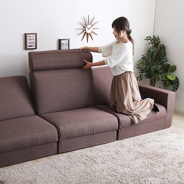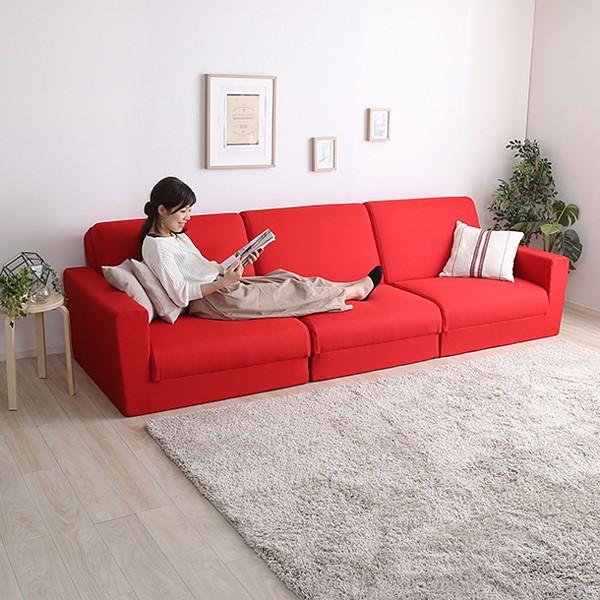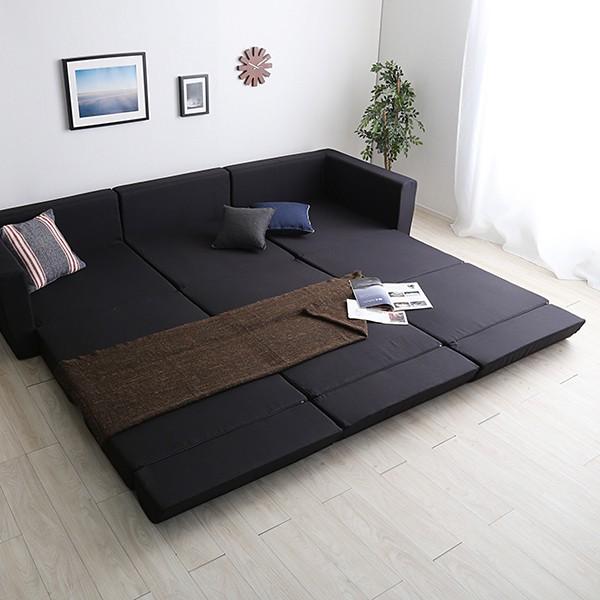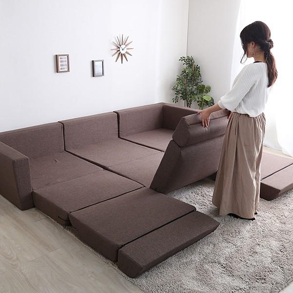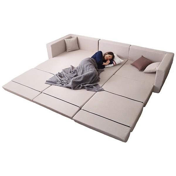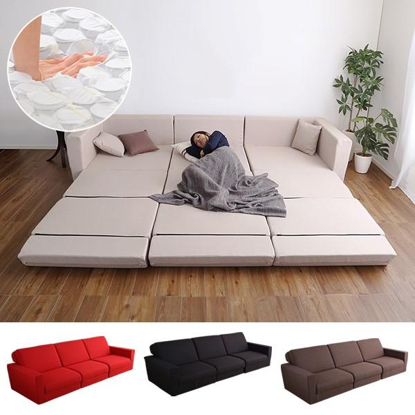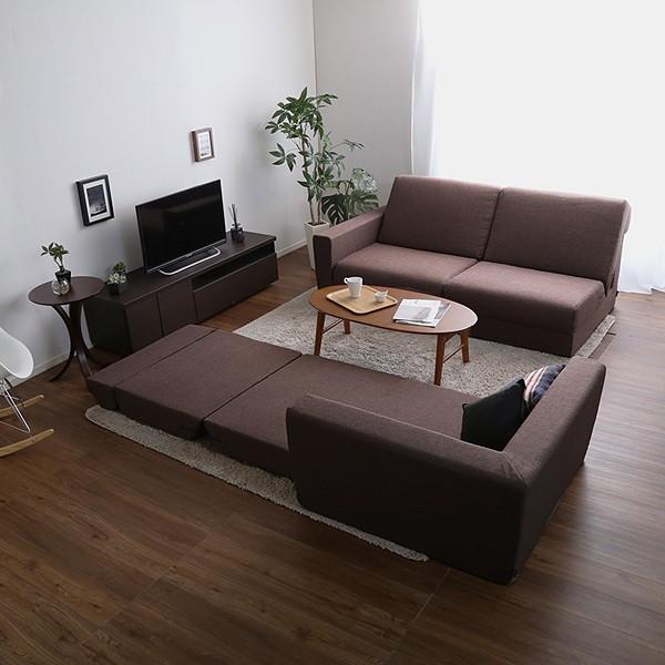 3つのパーツを自由に組替られる、三人掛けのソファベッドです。