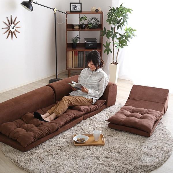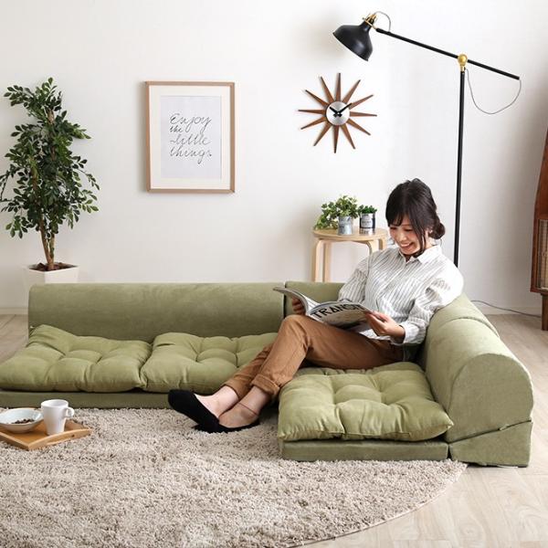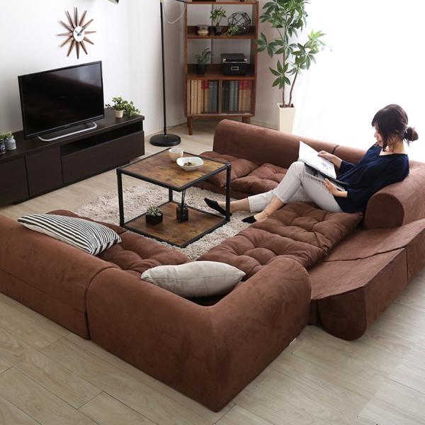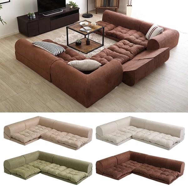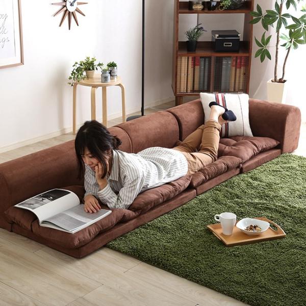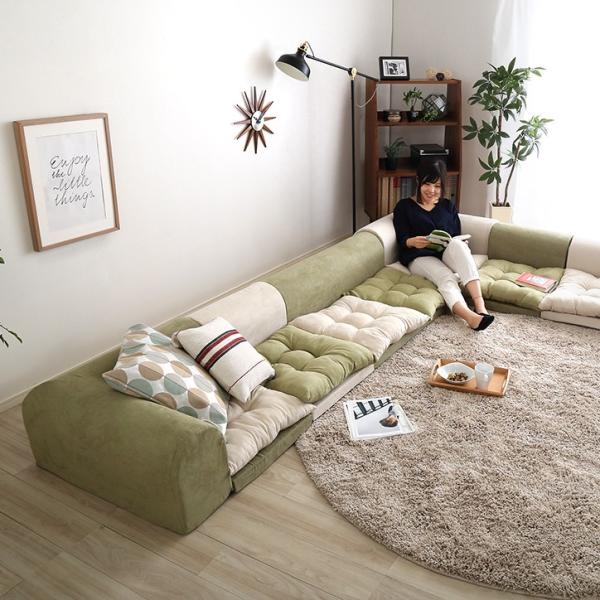 お部屋を広く見せる、フロアタイプの6人掛けローソファです。