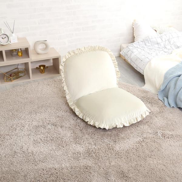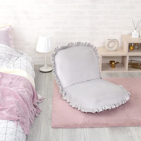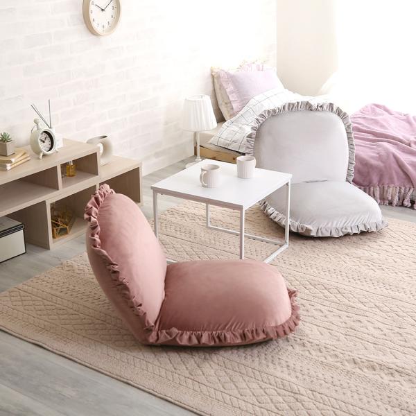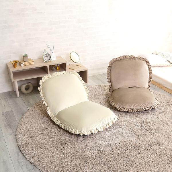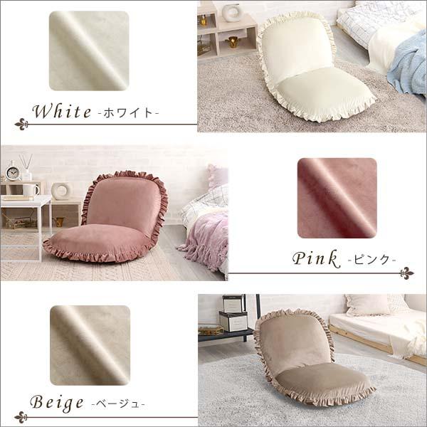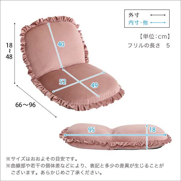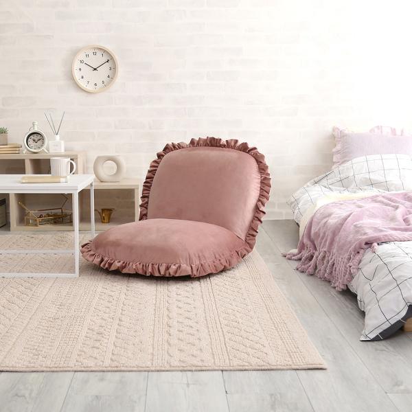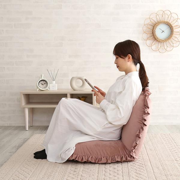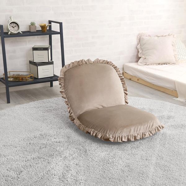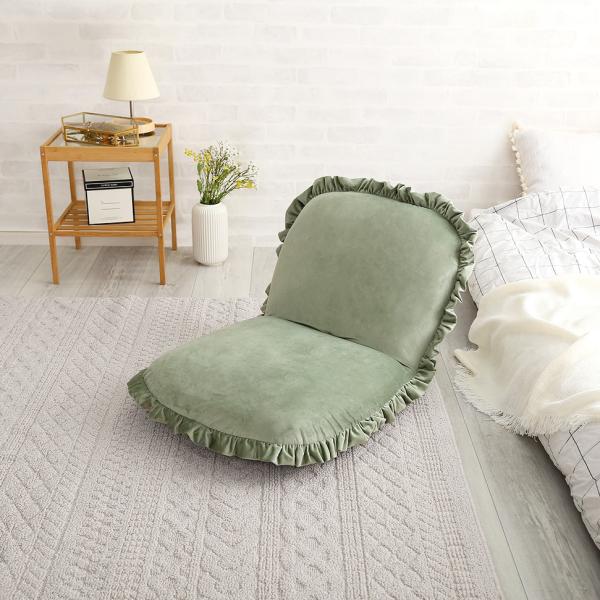 座椅子 おしゃれ コンパクト 北欧 かわいい ガーリー ロマンチック ベロア フリル くすみカラー リクライニング フラット クッション性 厚み ふっくら 日本製 【納期E】【szo-sh-07-okbf】