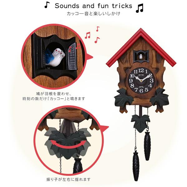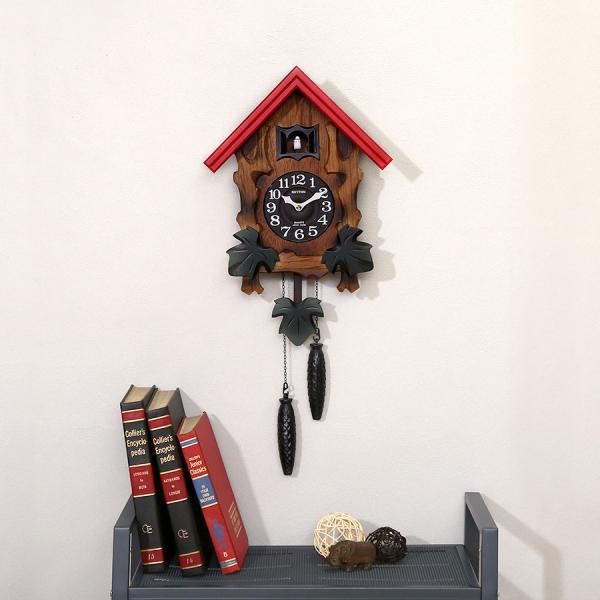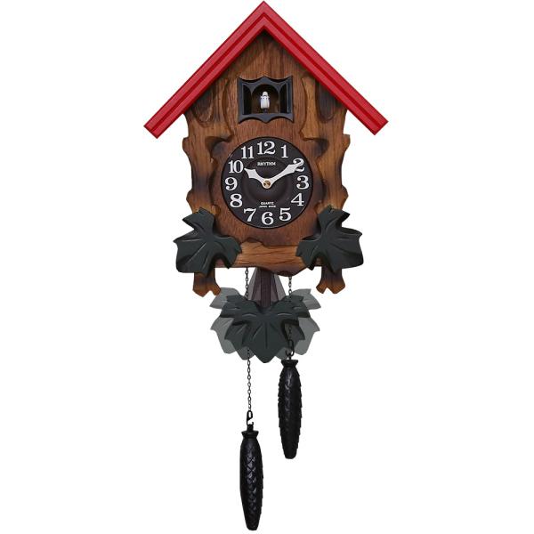 掛け時計 振り子時計 鳥 トリ 鳩時計 ハト時計 カッコー 仕掛け アナログ からくり時計 カラクリ かわいい おしゃれ 北欧 カントリー ナチュラル 時計 リビング ダイニング 玄関 天然木製 RHYTHM リズム