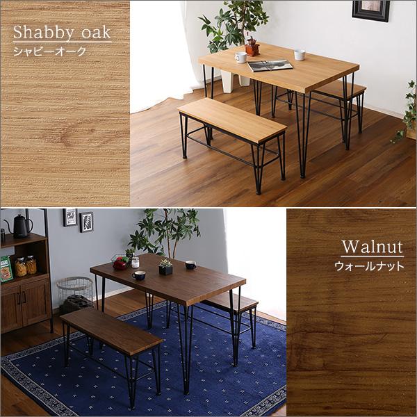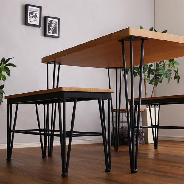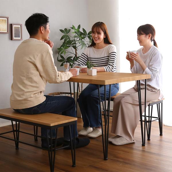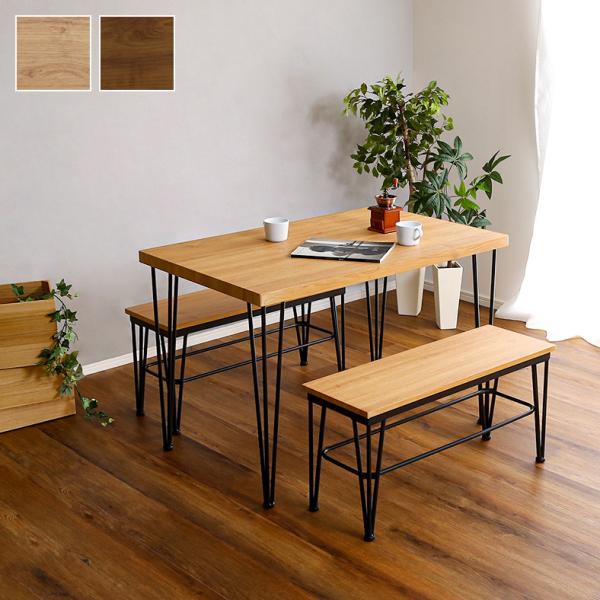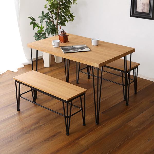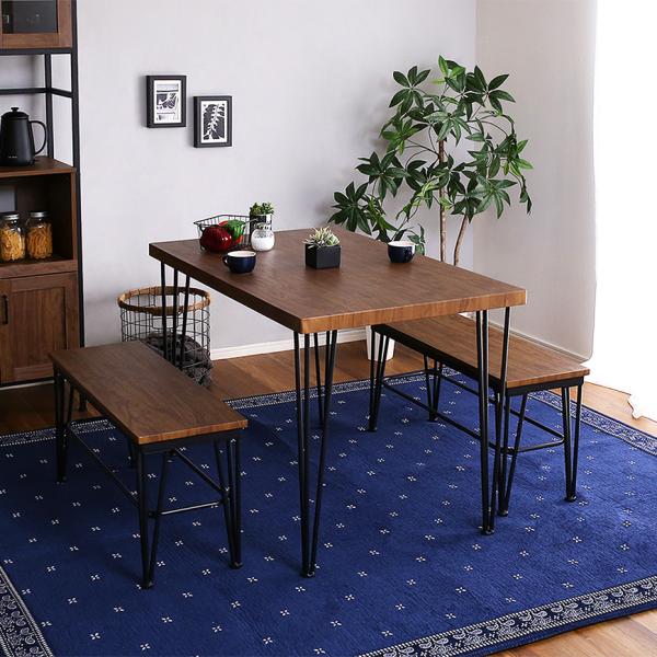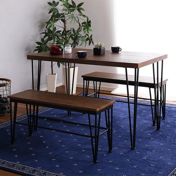 ヴィンテージ ダイニングテーブルセット テーブル ベンチ ヴィンテージ調 4人掛け スチール脚 オシャレ 3点セット コンパクト 木目 カフェ 食卓テーブル 家族 モダン