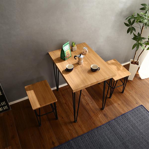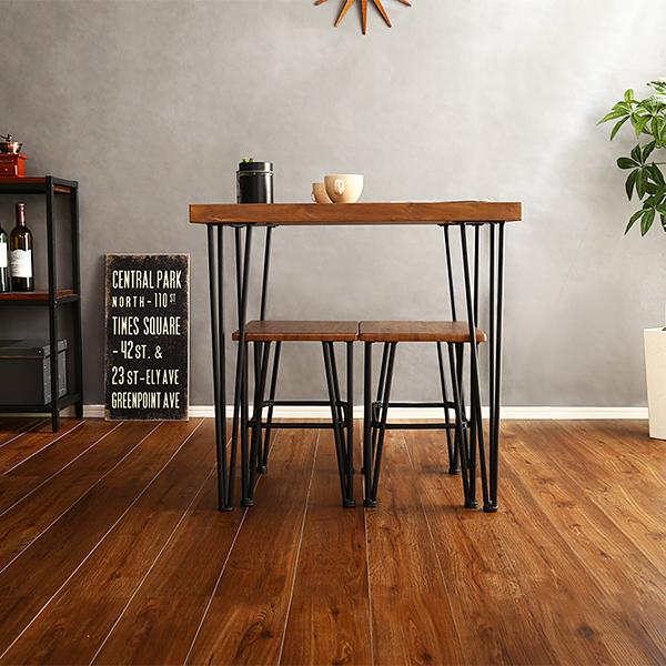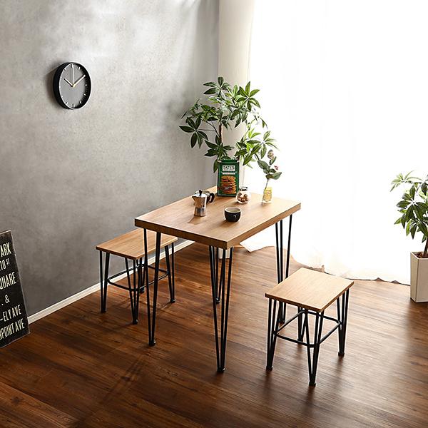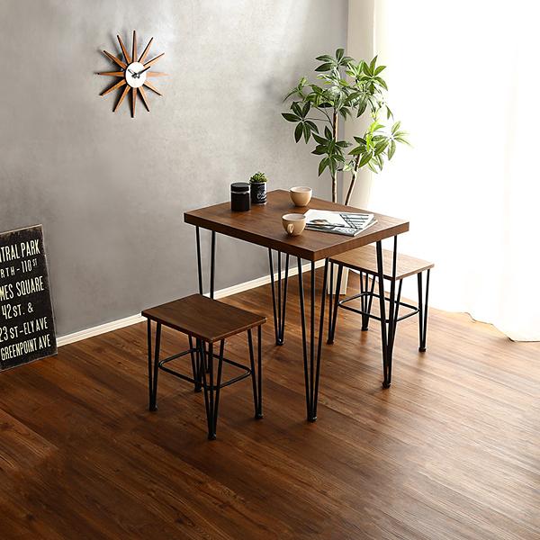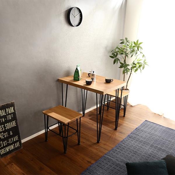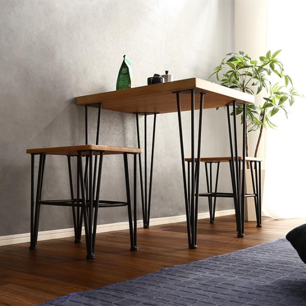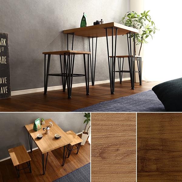 ダイニングセット 3点セット ダイニングテーブル ダイニングチェア テーブル 椅子 おしゃれ ビンテージ風 木目 スチール脚 西海岸風 ナチュラル カフェ風 【納期A】【szo-vds-3】