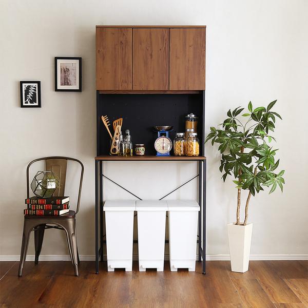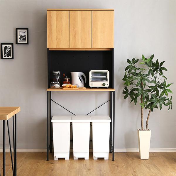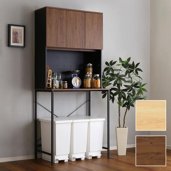 ゴミ箱上ラック 約80cm 幅 食器棚 収納棚 ごみ箱上 キッチン リビング スペース有効活用 家電収納 可動棚 おしゃれ コンセント付き 北欧 西海岸 ビンテージ風 【納期C】【szo-vsk-t30l3】