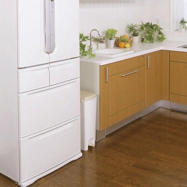 フットペダル式なので、キッチンでの作業中など両手がふさがっているときにも、足で開けられて勝手にフタが閉まります。