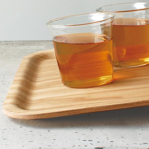 軽くて丈夫な作りで、表面には載せたものが滑りにくくなる塗装(ノンスリップ加工)を施したウッドトレー。