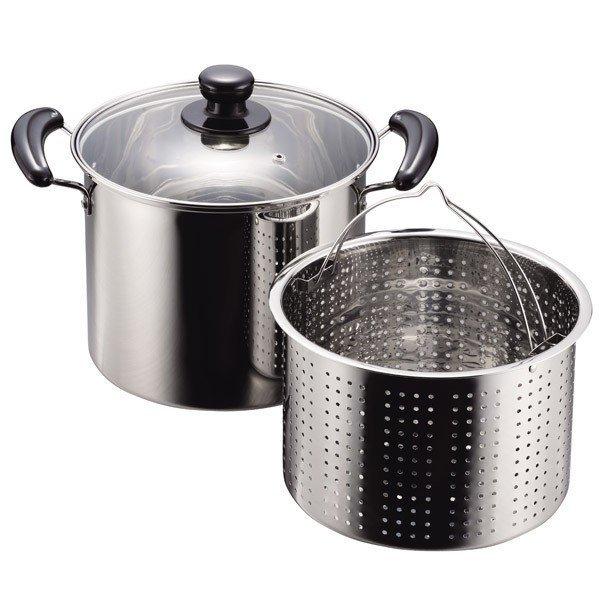 パスタ鍋 IH対応 パスタ用鍋 なべ 寸胴鍋 ih ガラス蓋付き スパゲティ スパゲッティ 麺類 ゆがく 茹でる 中子取り外し 使いやすい 茹で 煮込む ステンレス製