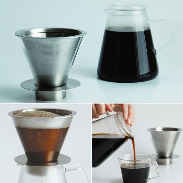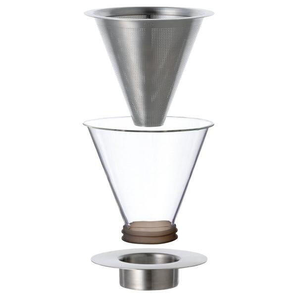 上質なステンレス×耐熱ガラスの輝きを纏ったドリッパーとガラスポットの2点セット。
