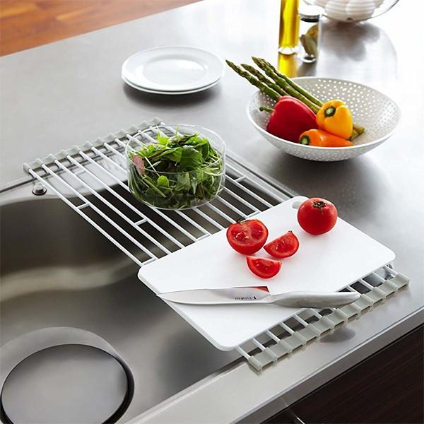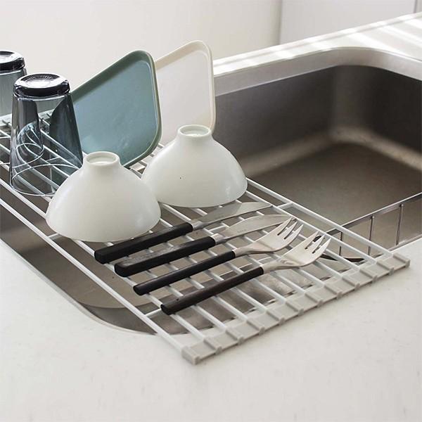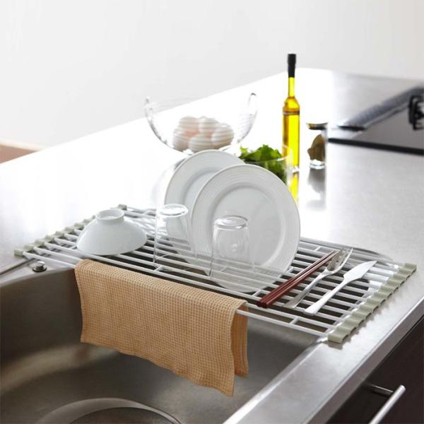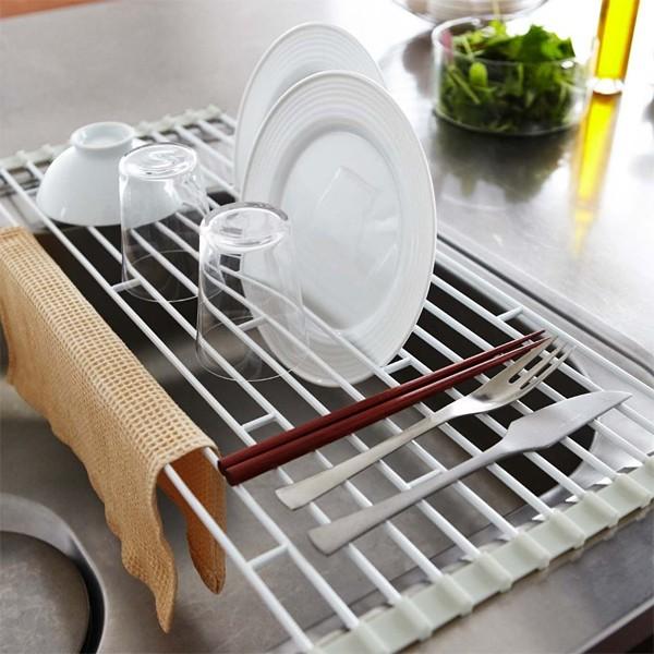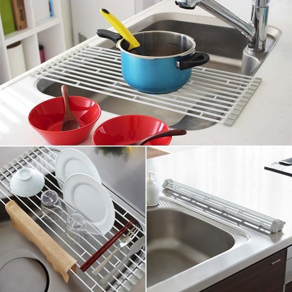 使わない時はクルッと巻いて収納できる折り畳み水切りラックです。