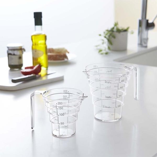 200mlと500mlの計量カップはスタッキングして収納することができます。