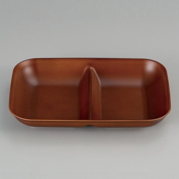 電子レンジで温め直すことができる、木目調のプレートです。仕切りがあるので料理が混ざりにくく、取り分けしやすいです。
