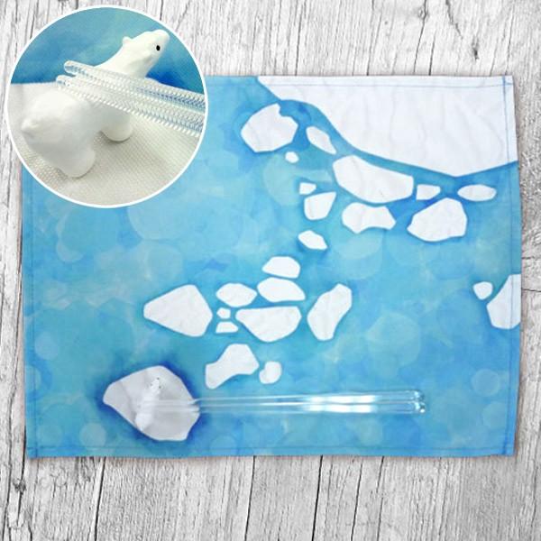 シロクマの箸置きと流氷マットで北極にいるようなクールなデザイン。
