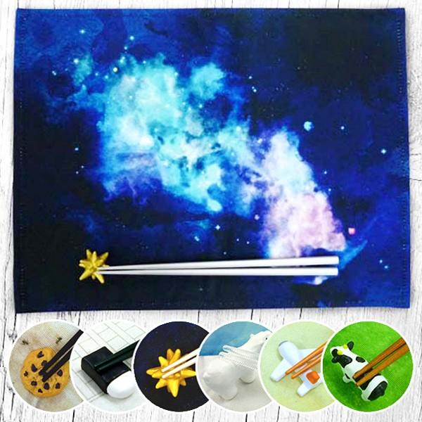 神秘的な星屑の箸置きとコスモマットで宇宙にワープしたような壮大さ。