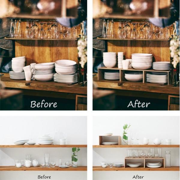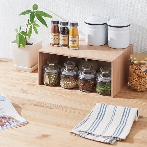 キズや汚れに強く、耐久性に優れた材質を使用、キッチンなどでも安心してお使い頂けるコの字型ラックです。住宅建材などに用いられるVカット工法で作られた美しい形なので、魅せる収納にピッタリ!