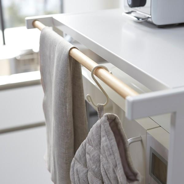 電子レンジや炊飯ジャー・トースターやコーヒーメーカーが置ける便利なラック。多目的バー付きで、フキンなどを掛けられます。