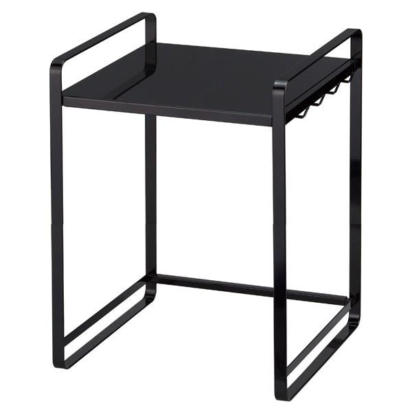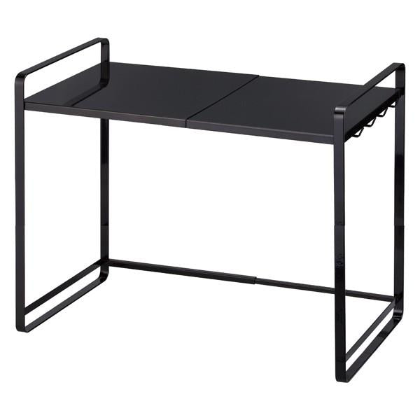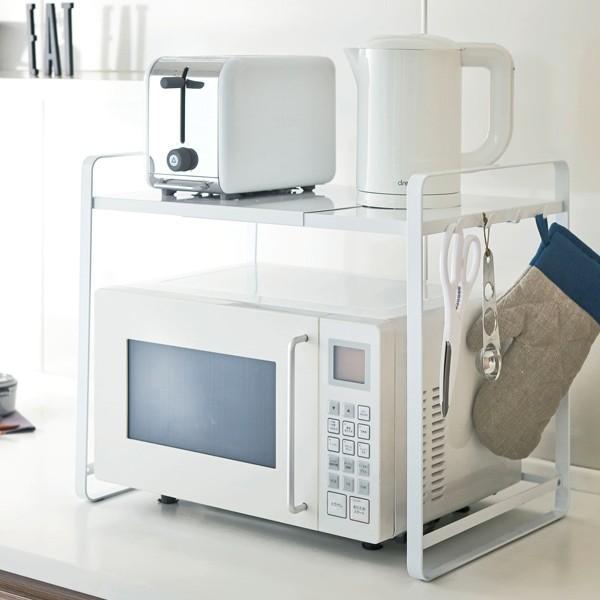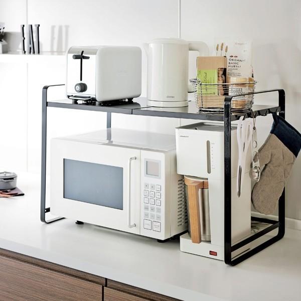 白黒のモノトーンがおしゃれなシンプルデザインを追求した伸縮電子レンジ収納ラックです。