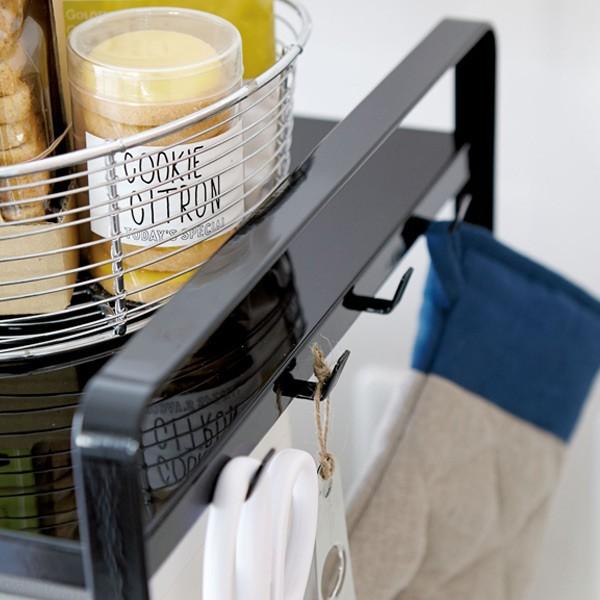 フレームにフック機能が付いているので、ハサミやスケールなどキッチン小物を一括収納できる優れものです。