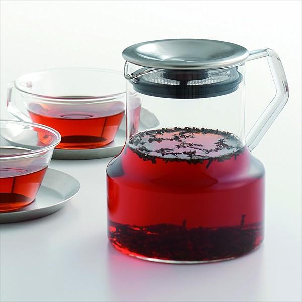 素材は軽くて耐熱性のある「ホウ珪酸ガラス」を採用し、ポットそのものの重さを軽量しながらもゆったりと茶葉がジャンピングしやすい形や注ぎやすさや洗いやすさを重視しました。