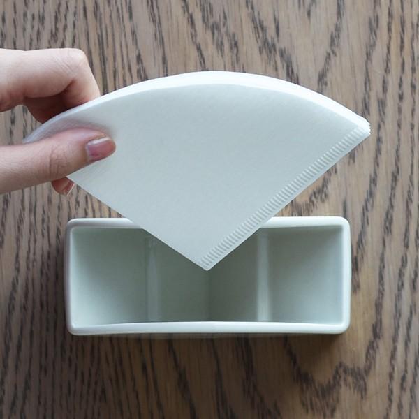 安定感のある磁器製のフィルタースタンドはペーパーフィルターを60枚収納でき、円錐形と台形、いずれの形にも対応します。