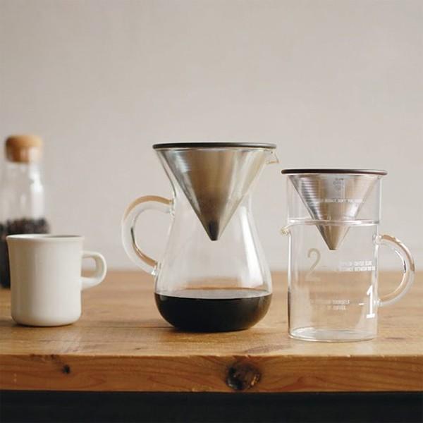ステンレスフィルター、ブリューワー、ガラス製ジャグ、ホルダーのセットです。