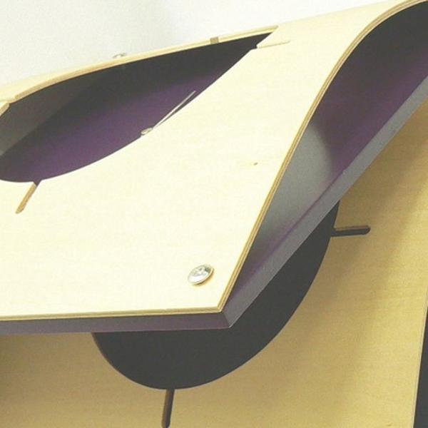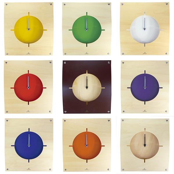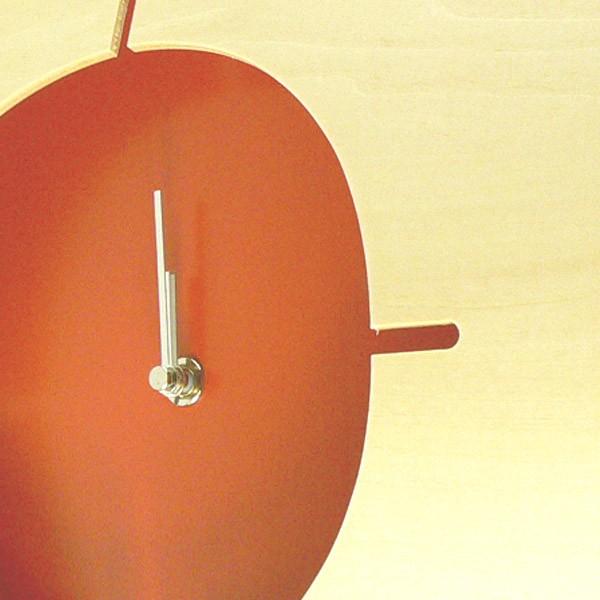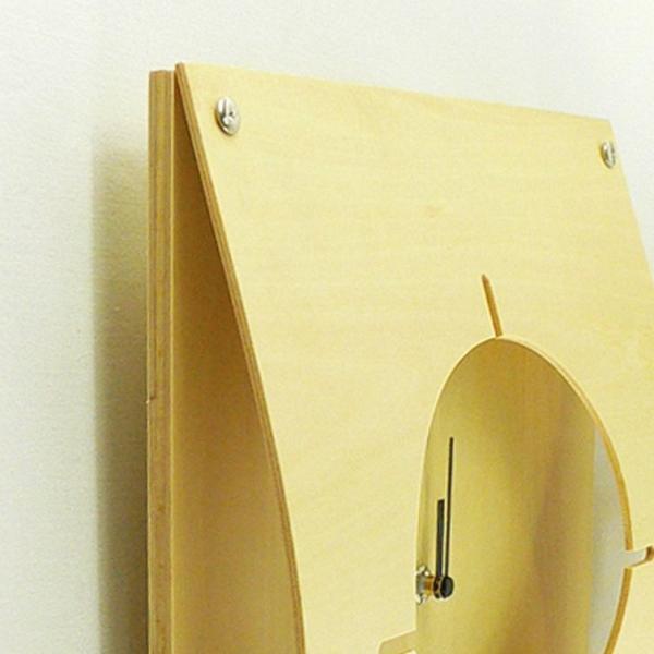 曲げ技術を活かすデザインで、表面の1枚板は職人の技術によってなめらかなカーブに仕上げた掛け時計です。