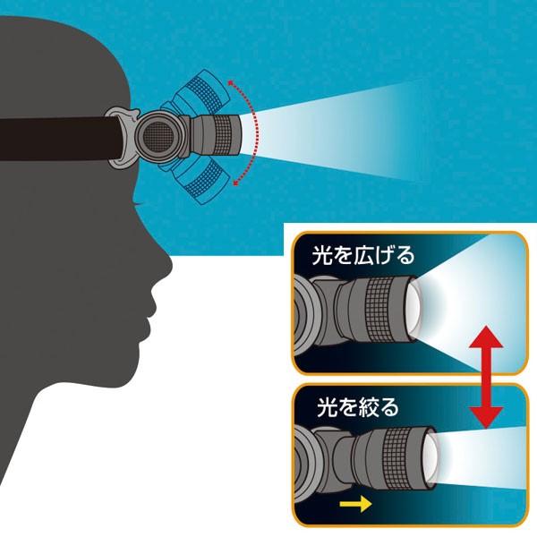 集光調節機能と上下の角度調節機能付きで狙ったところを明るく照らせます。