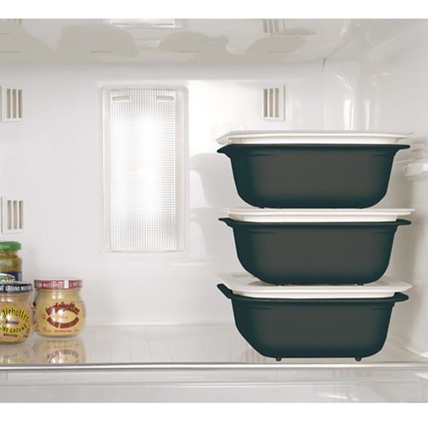 2.フタ+バット:・お肉やお魚など下味の漬け込みに!(フタをして冷蔵庫に一時保管できます。)