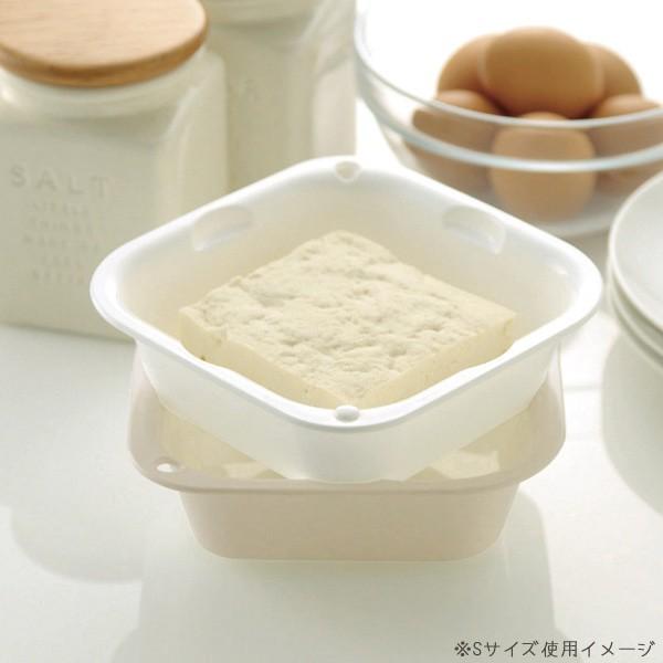 フックにかけて保管できる穴付き。穴に合わせて水切り時のズレを防止する突起付きです。