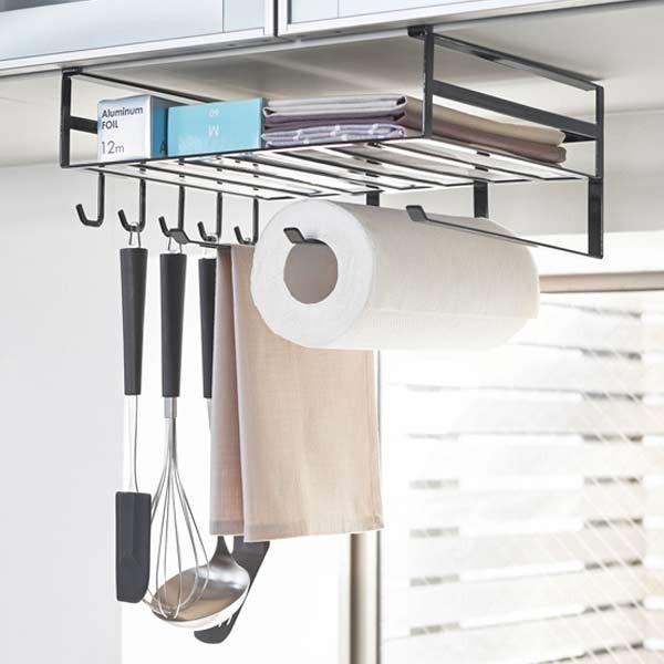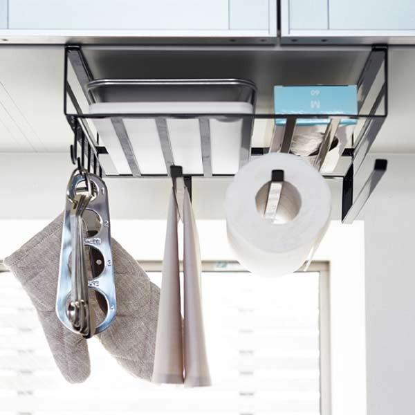 吊り戸棚の下を有効活用し、キッチン小物をたっぷり収納できる戸棚下多機能ラックです。