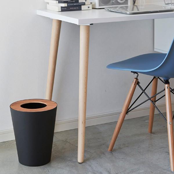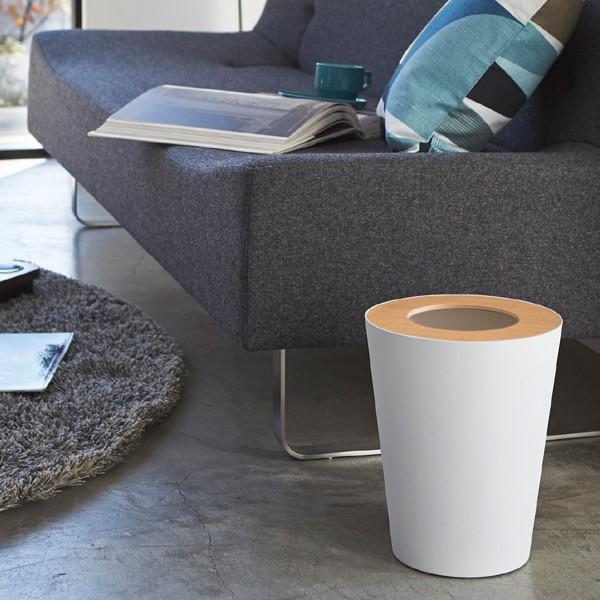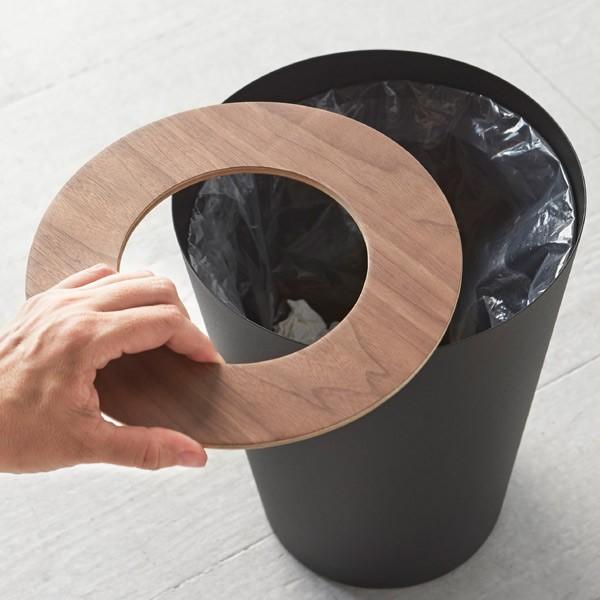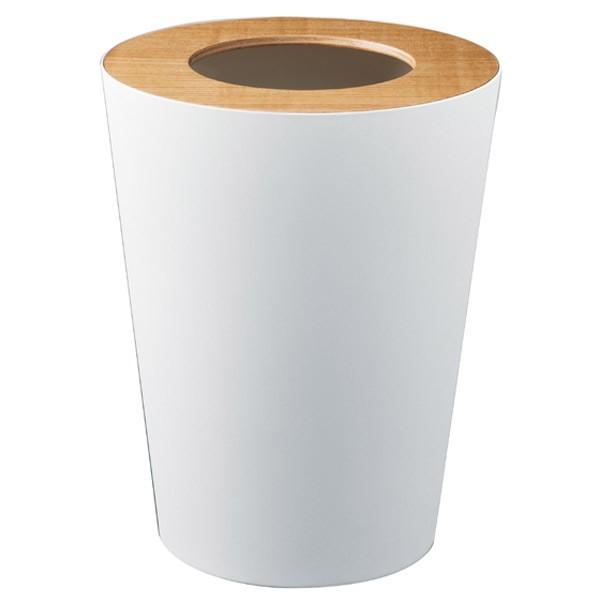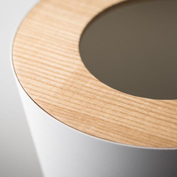 美しい木目でインテリア性のあるスタイリッシュなデザインの丸型トラッシュカンです。