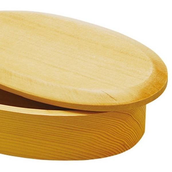 木をくりぬいて作られたなめらかな曲線が美しいお弁当箱です。
