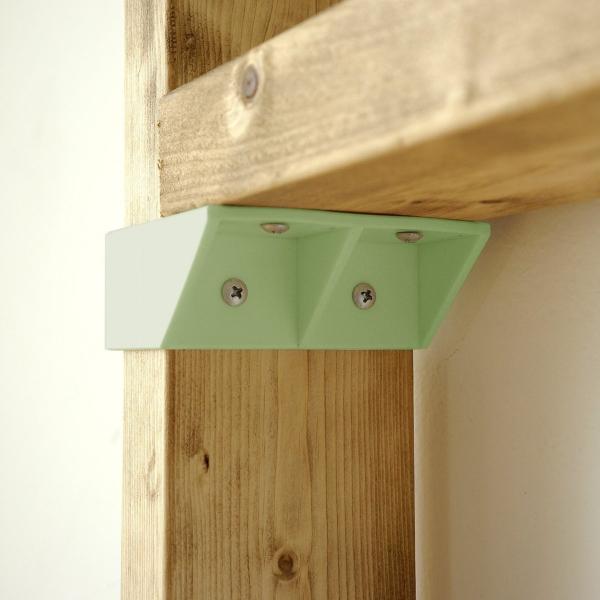 女性やファミリーでも安全で気軽に取り付けができるオシャレな「2×4材用」の棚受け(シングル)です。