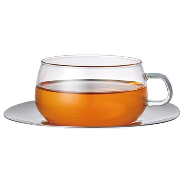ステンレスの輝きが美しいソーサーは、スプーンやシュガーを置けるサイズで、来客時にも重宝します。