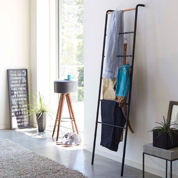 ズボンやスカーフの収納、洋服の一時掛けにも便利な立て掛けラダーハンガーです。