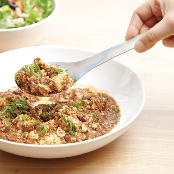 先端の丸みと深すぎない曲面で、食器や鍋のフチに沿って最後まできれいにとることができるサービングスプーンです。