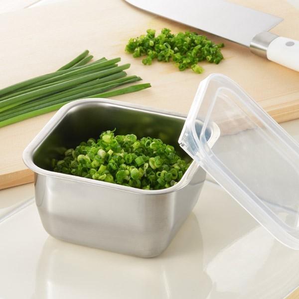 色移り・匂い移りしにくいステンレス製の保存容器です。