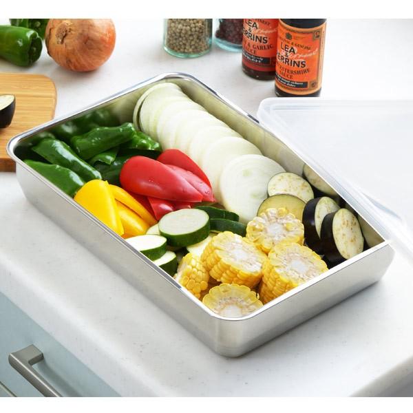 食材の一時保存に便利なフタ付きで、常備菜や作り置きに便利です。