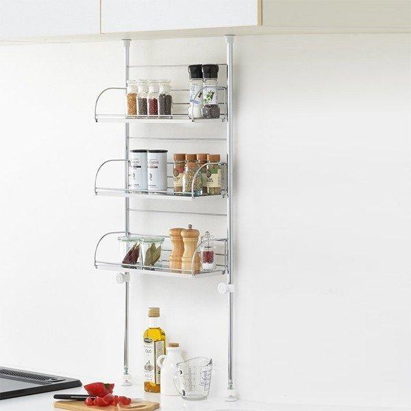 突っ張り式で場所をとらずにたっぷり収納出来るスパイスラックです。