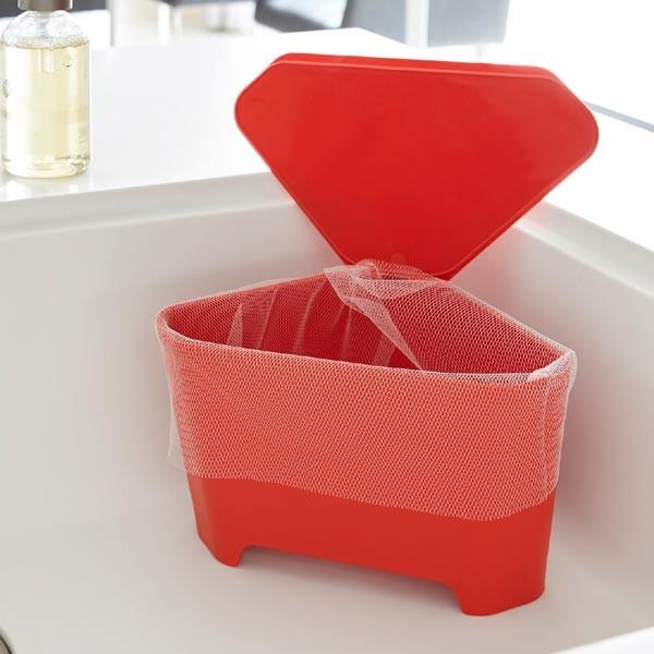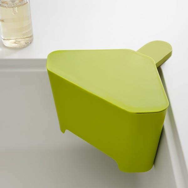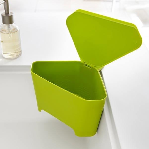 シンクの角に吸盤で簡単設置できるフタ付き三角コーナーです。
