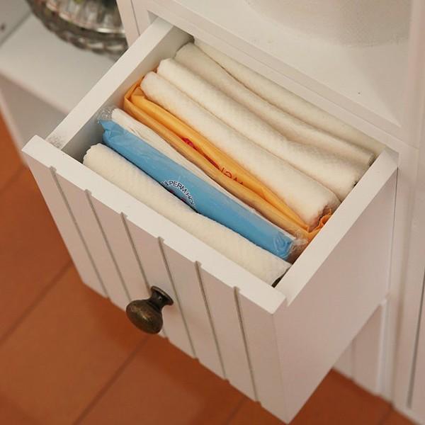 トイレットペーパーや清掃用品、生理用品などの見られたくない小物を収納するのに便利です。
