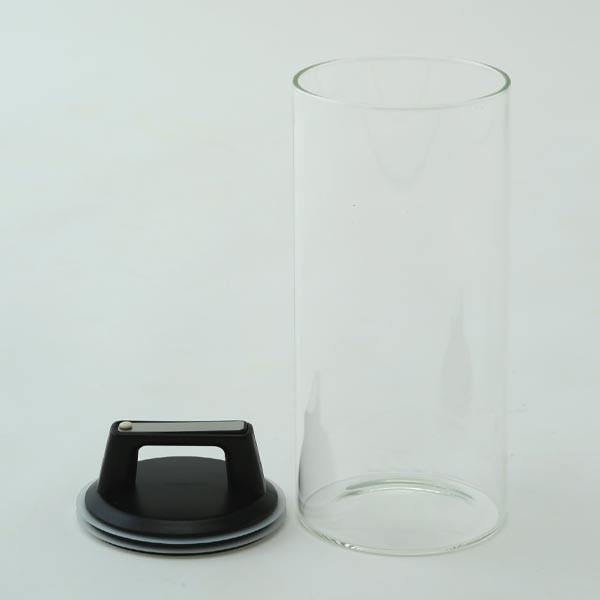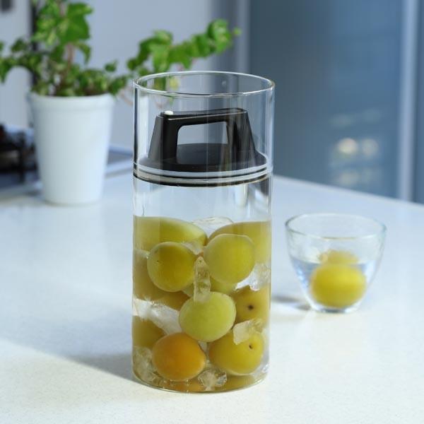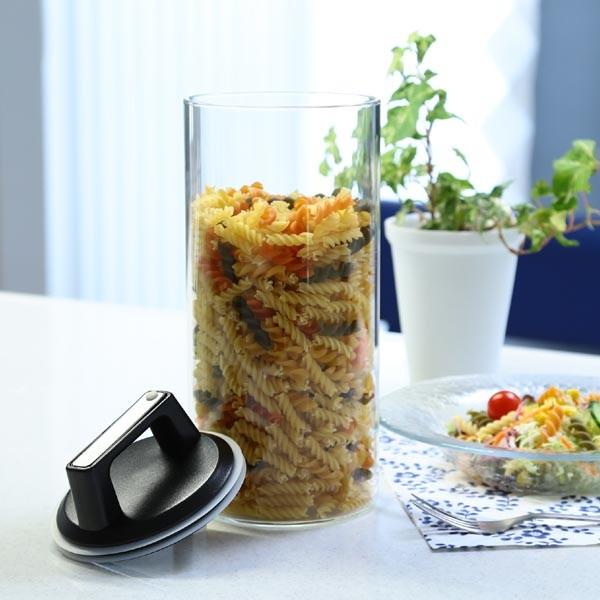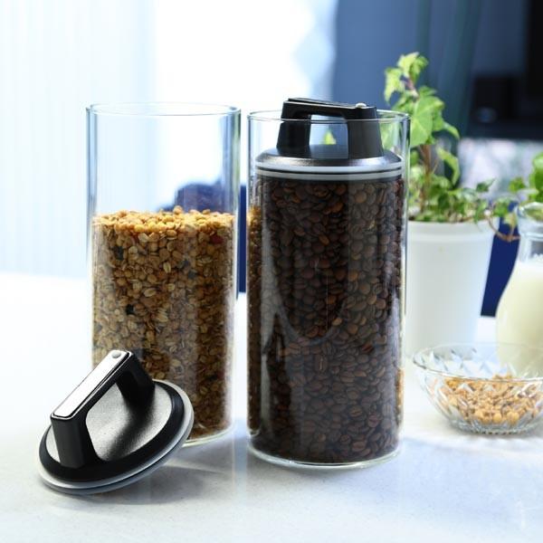 余分な空気を特殊なフタで押し出して食品の酸化を防止し長期保存できるガラス容器です。