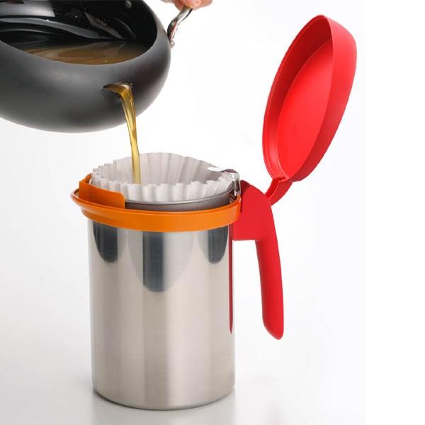 フィルターをセットし、ろ過パウダーを入れ、油が熱いうちに注ぐだけでのロカポットです。